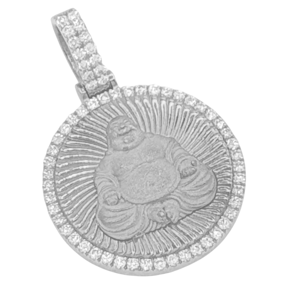 Diamond Cut Full Body Buddha Circle Pendant w/ Diamond Frame